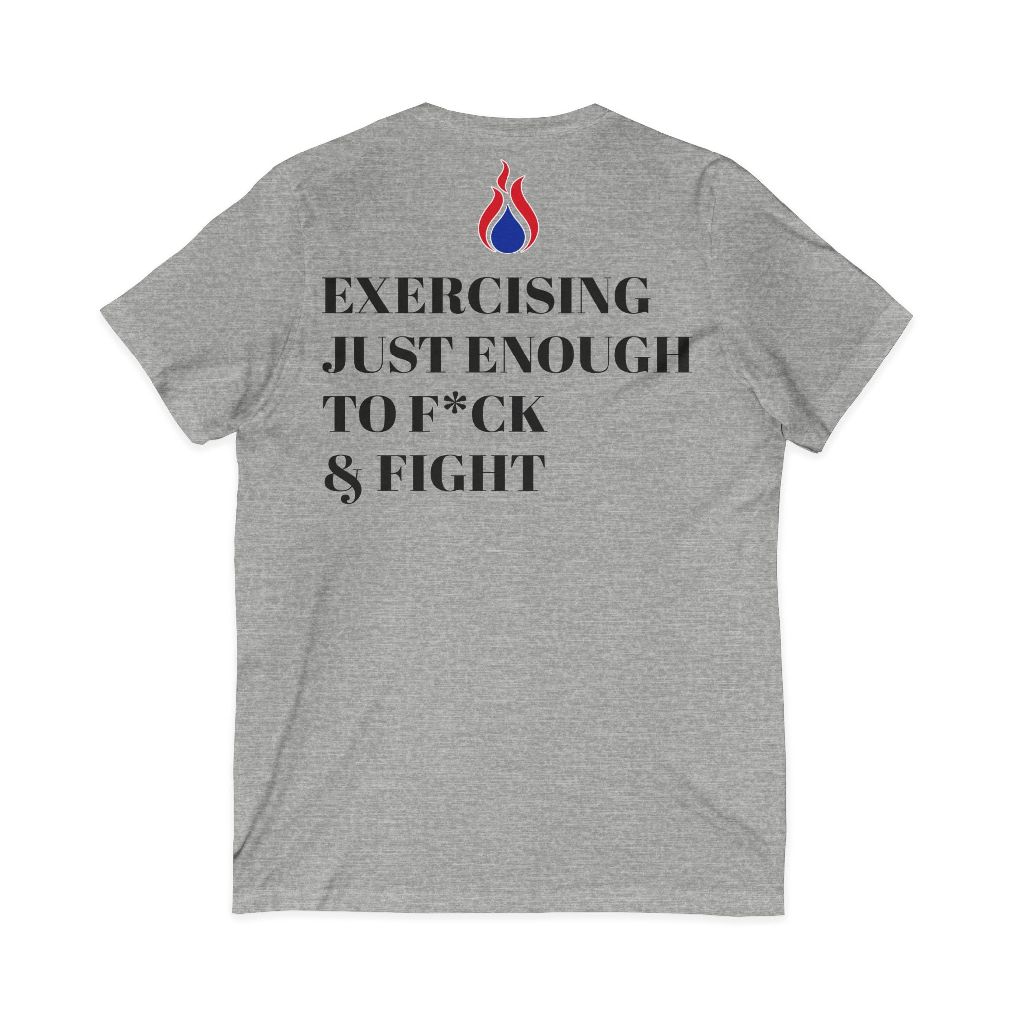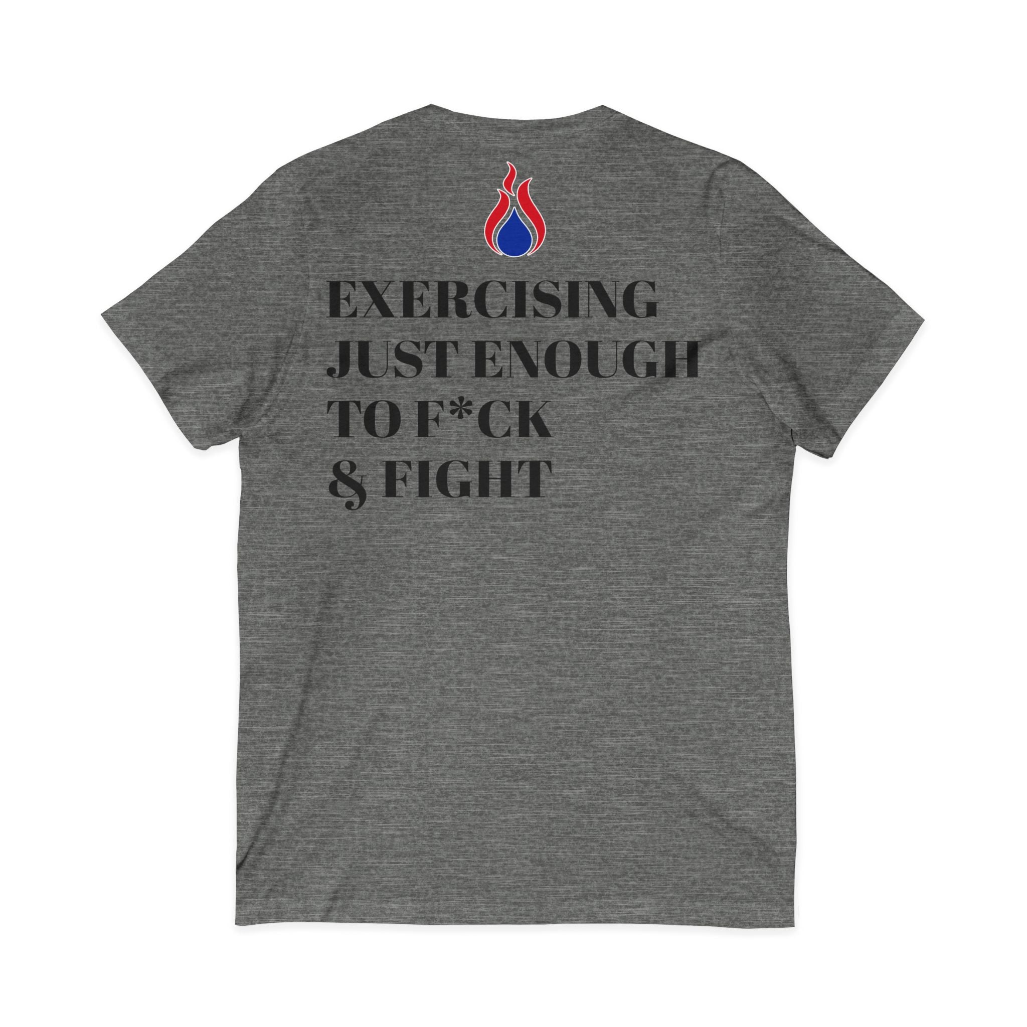 This lightweight V-neck tee brings sharp, unapologetic attitude to everyday wear. The front chest carries a small, subtle emblem while the back makes a bold statement with stenciled, high-contrast type and a small flame motif — a design that reads like a personal mantra: controlled heat, ready energy. The retail fit and soft cotton (or cotton-blend heathers) drape cleanly under jackets or stand alone with jeans. Built with side seams, shoulder tape, and a ribbed knit collar for shape retention, it’s made to move without losing its form. Ethically produced and tear-away labeled, this shirt fits into wardrobes where intention and comfort matter as much as expression.